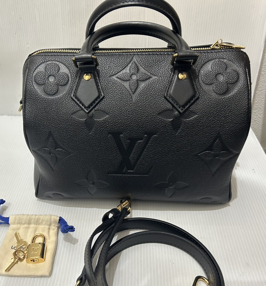 上質なレザーにモノグラムの型押しが施されたアンプラントラインは、上品さと実用性を兼ね備えた人気モデルです。スピーディ25は程よいサイズ感で、ショルダーとしても使えるバンドリエール付きなのが魅力✨